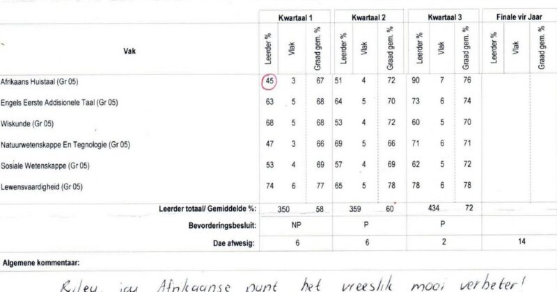 They have only been there for a short time – they started in July, but I can see a big difference in Riley’s confidence, concentration, and willingness to work. She no longer complains about going to school. In the first term, Riley failed Afrikaans. She had 45%. I was anxious to see what would happen, as Louise did warn me it could take a while before we saw a drastic improvement. But in term 3, she got a 90% for Afrikaans. She could not believe it, and I could see that this also boosted her confidence. Science went from 47% in the first term to 71%. Her average went from 58% to 72%.